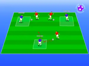 If the players with the soccer ball are able to dribble through the square exiting the side that they entered they will get 3 points.